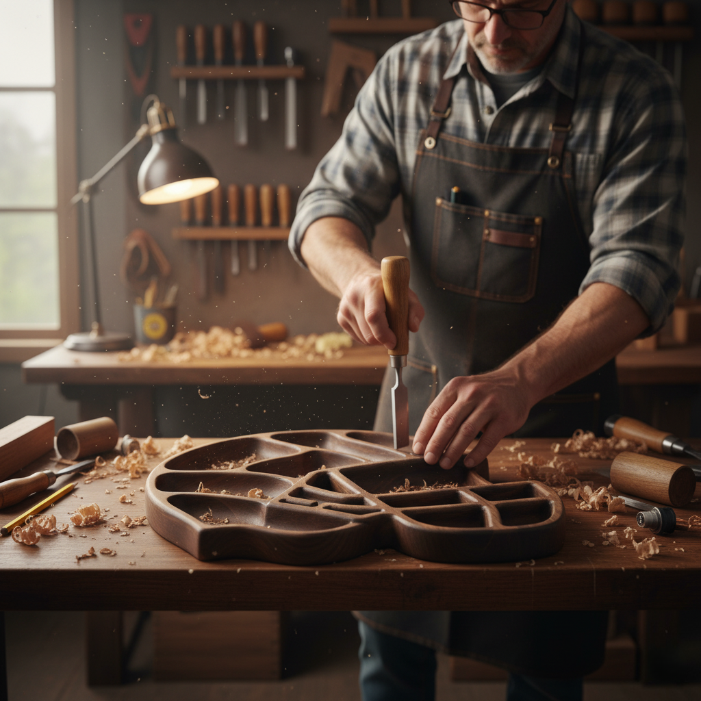 Made from rich, smooth, hand-finished wood, this helmet-shaped platter features multiple carved compartments that perfectly hold charcuterie staples, fresh fruit, cheeses, crackers, candies, nuts, and everything you need to turn a simple snack moment into a full-on celebration